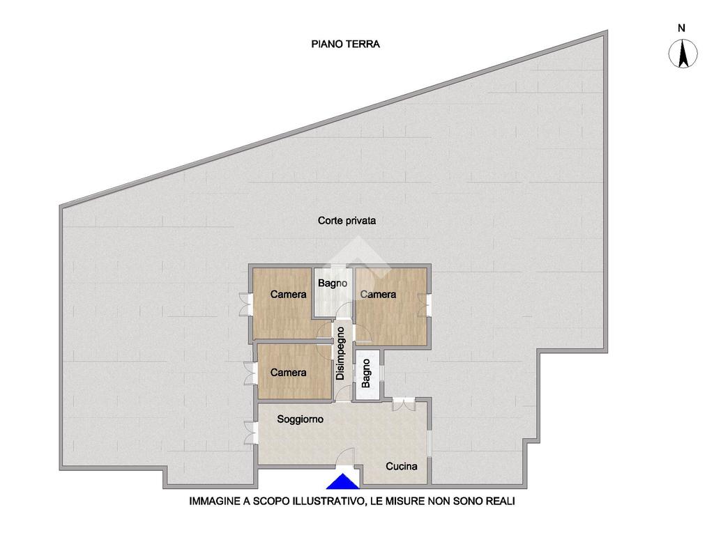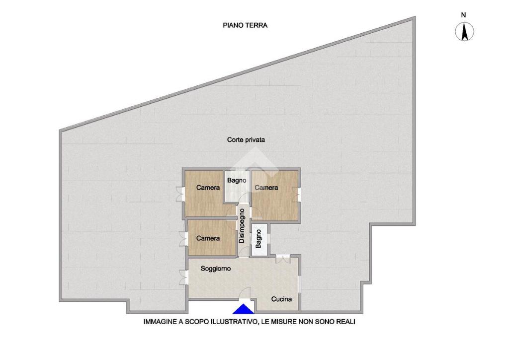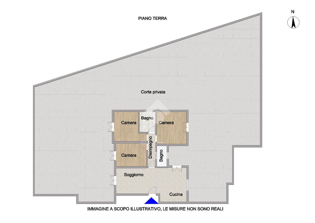 L’ingresso si apre su un ampio e luminoso soggiorno con cucina a vista, ambiente accogliente e funzionale, con accesso diretto alla spaziosa corte privata, ideale per momenti di relax all’aperto.