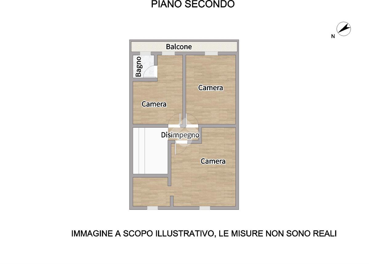 Al secondo livello troviamo tre spaziose camere matrimoniali, un bagno e un balcone.